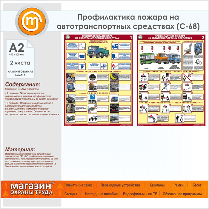 Плакаты «Профилактика пожара на автотранспортных средствах» (С-68, ламинированная бумага, А2, 2 листа) в Ачинске купить