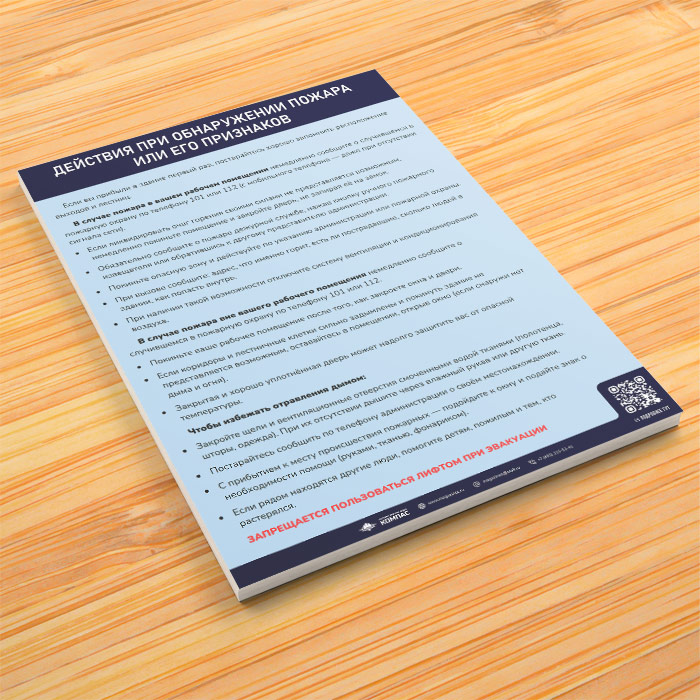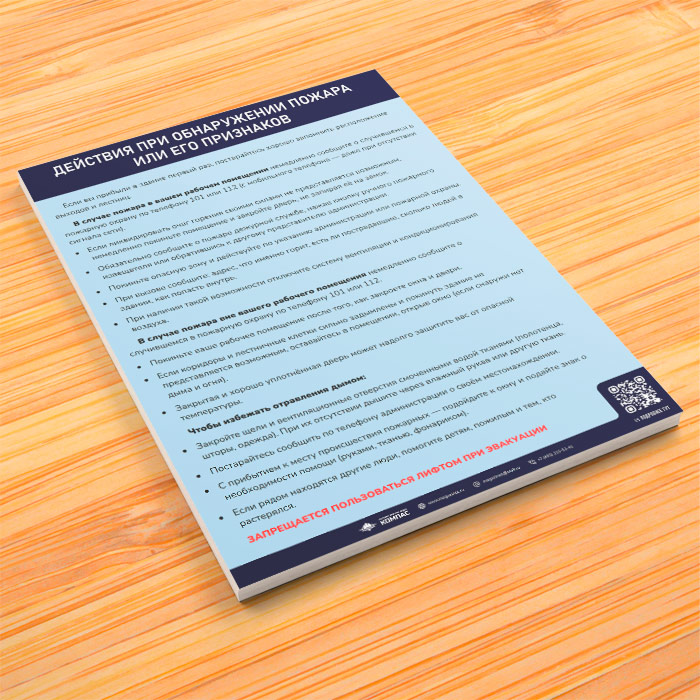 Плакат «Инструкция при обнаружении пожара или его признаков» (М-11, ламинированная бумага, А4, 1 лист) в Ачинске купить