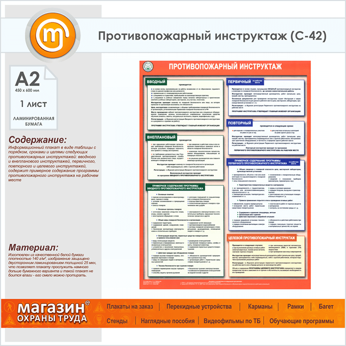 Плакат «Противопожарный инструктаж» (С-42, ламинированная бумага, А2, 1 лист) в Ачинске купить
