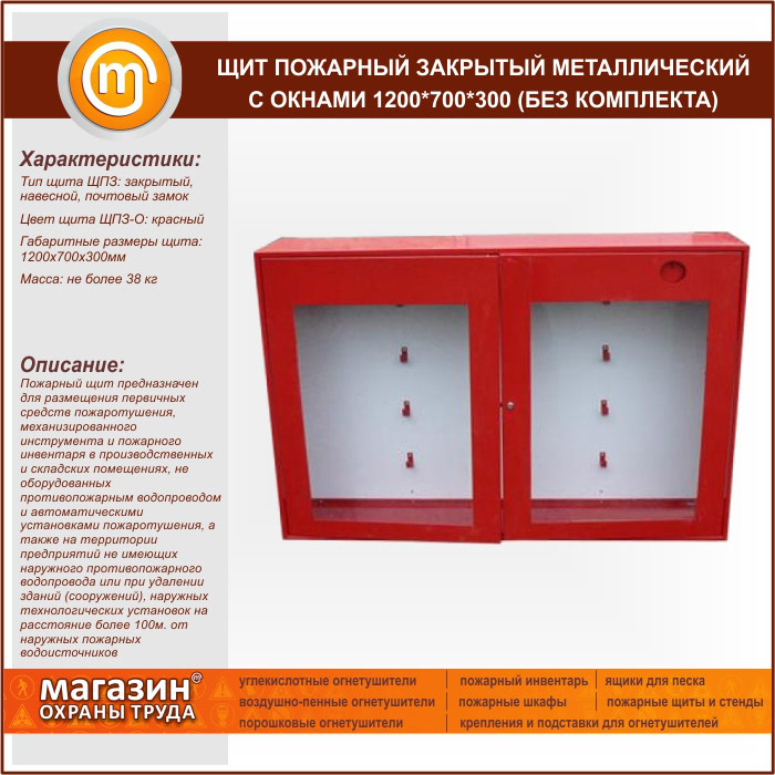 Щит пожарный закрытый металлический с окнами 1200*700*300 (без комплекта) в Ачинске купить