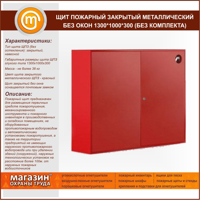 Щит пожарный закрытый металлический без окон 1300*1000*300 (без комплекта) в Ачинске купить