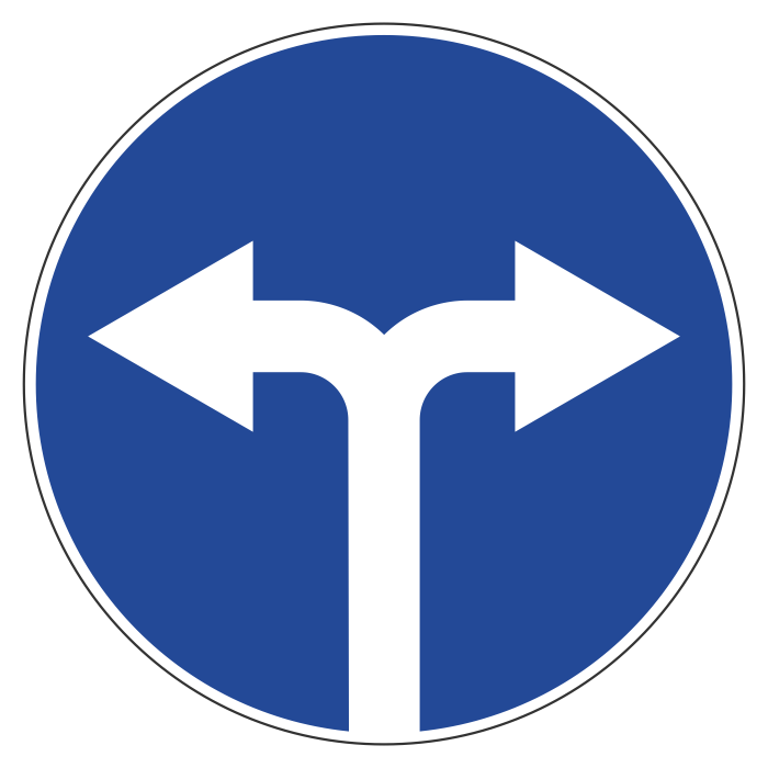 Дорожный знак 4.1.6 «Движение направо или налево» (металл 0,8 мм, I типоразмер: диаметр 600 мм, С/О пленка: тип В алмазная) в Ачинске купить