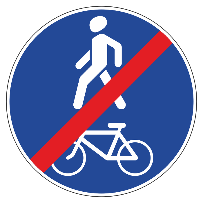 Дорожный знак 4.5.3 «Конец пешеходной и велосипедной дорожки с совмещенным движением» (металл 0,8 мм, II типоразмер: диаметр 700 мм, С/О пленка: тип В алмазная) в Ачинске купить