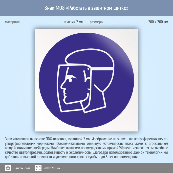 Знак M08 «Работать в защитном щитке» (пластик, 200х200 мм) в Ачинске купить