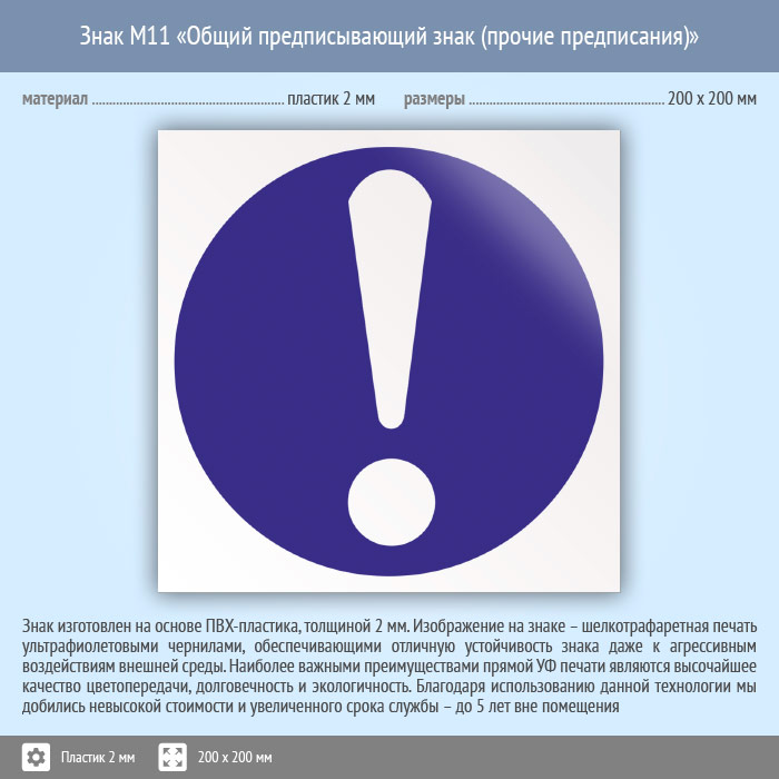 Знак M11 «Общий предписывающий знак (прочие предписания)» (пластик, 200х200 мм) в Ачинске купить