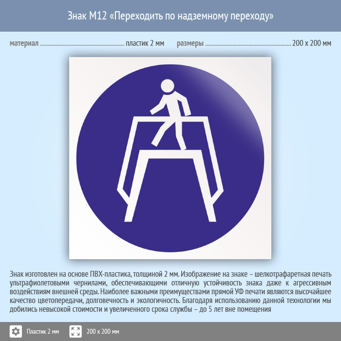 Знак M12 «Переходить по надземному переходу» (пластик, 200х200 мм) в Ачинске купить