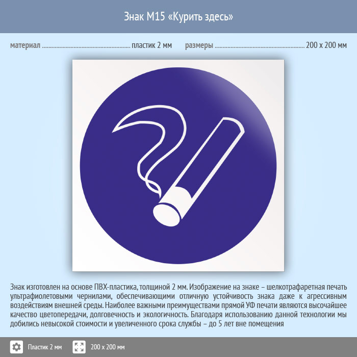 Знак M15 «Курить здесь» (исключен) (пластик, 200х200 мм) в Ачинске купить