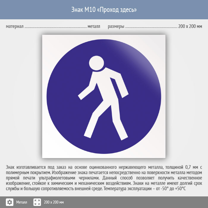 Знак M10 «Проход здесь» (металл, 200х200 мм) в Ачинске купить