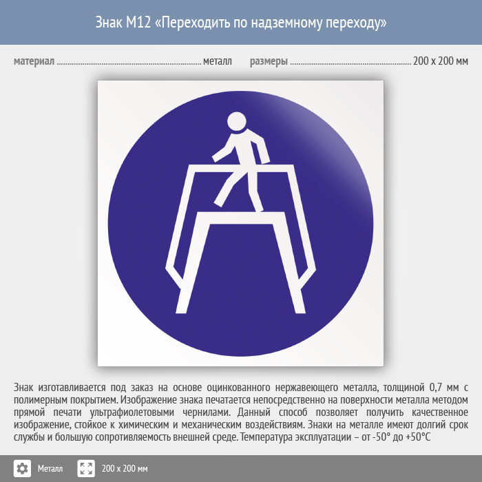 Знак M12 «Переходить по надземному переходу» (металл, 200х200 мм) в Ачинске купить