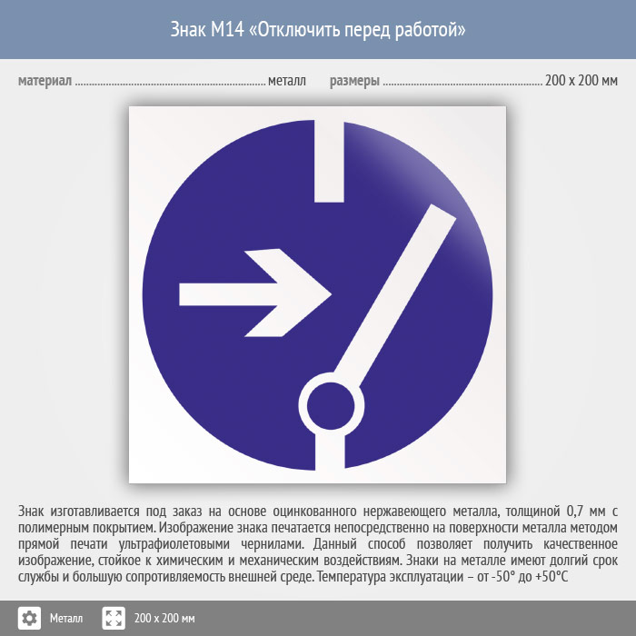 Знак M14 «Отключить перед работой» (металл, 200х200 мм) в Ачинске купить