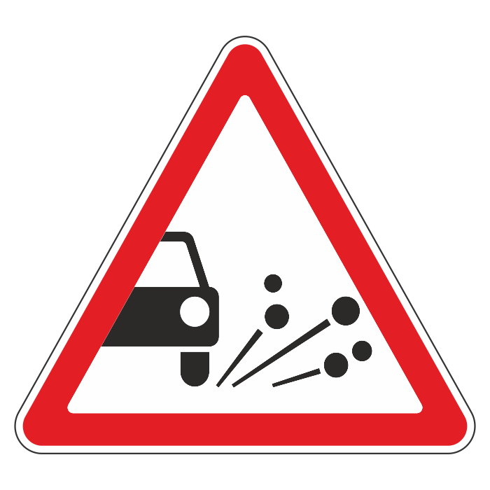 Дорожный знак 1.18 «Выброс гравия» (металл 0,8 мм, III типоразмер: сторона 1200 мм, С/О пленка: тип А коммерческая) в Ачинске купить