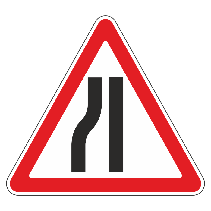 Дорожный знак 1.20.3 «Сужение дороги» (металл 0,8 мм, IV типоразмер: сторона 1500 мм, С/О пленка: тип Б высокоинтенсивная) в Ачинске купить