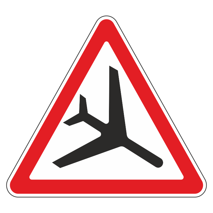 Дорожный знак 1.30 «Низколетящие самолеты» (металл 0,8 мм, III типоразмер: сторона 1200 мм, С/О пленка: тип В алмазная) в Ачинске купить