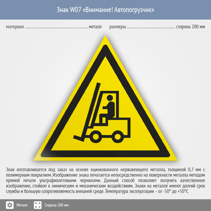 Знак W07 «Внимание! автопогрузчик» (металл, сторона 200 мм) в Ачинске купить