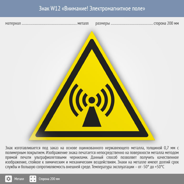 Знак W12 «Внимание! электромагнитное поле» (металл, сторона 200 мм) в Ачинске купить