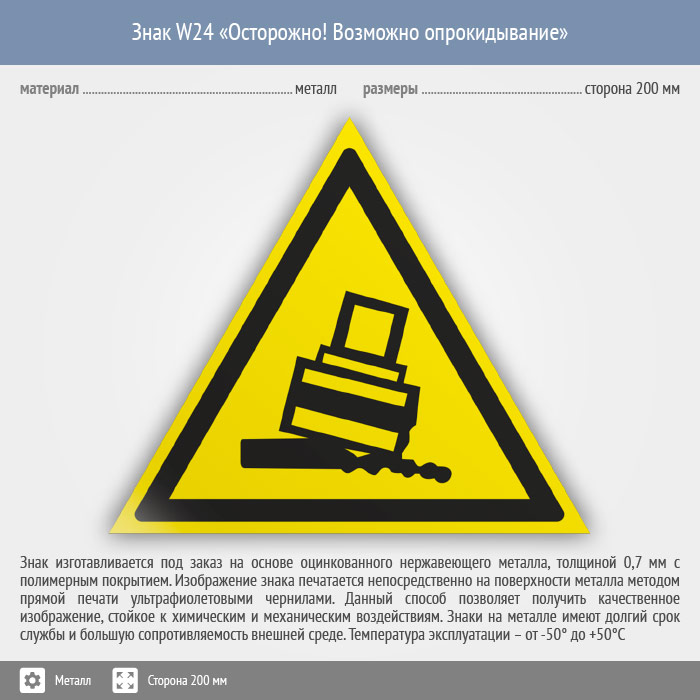 Знак W24 «Осторожно! возможно опрокидывание» (металл, сторона 200 мм) в Ачинске купить