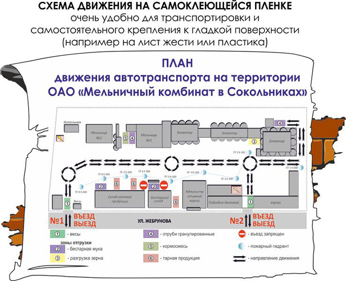 Схема движения автотранспорта (1500х1000 мм, самоклеящаяся плёнка) в Ачинске купить