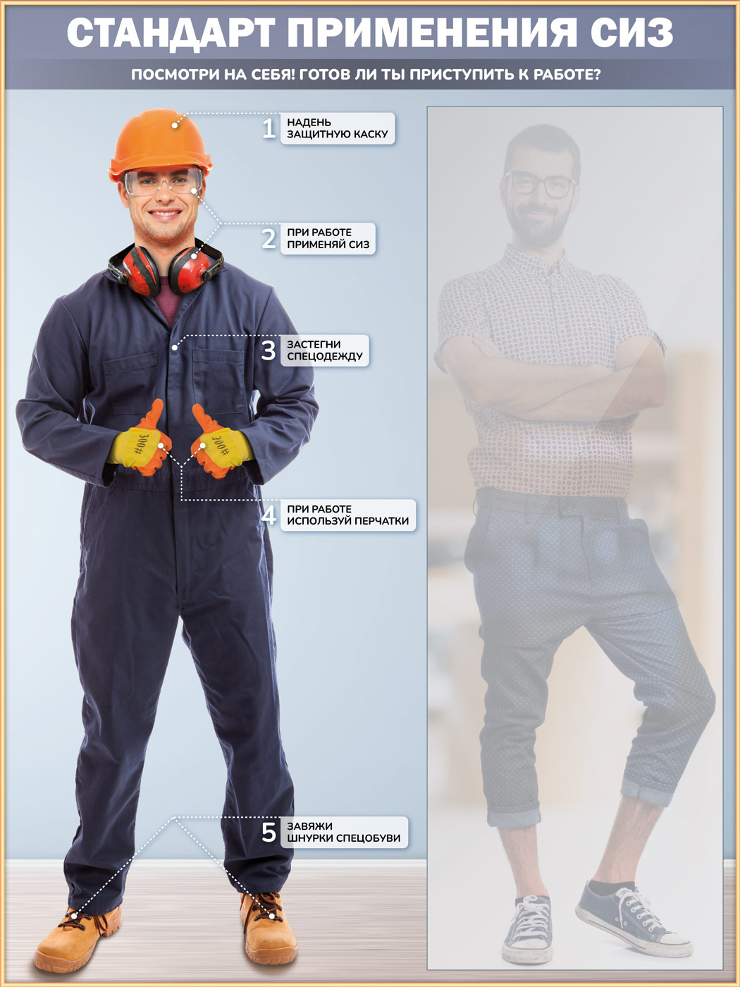 Стенд для демонстрации применения СИЗ с зеркалом, 1500х2000 мм в золотом багете (СПС-01-З) в Ачинске купить