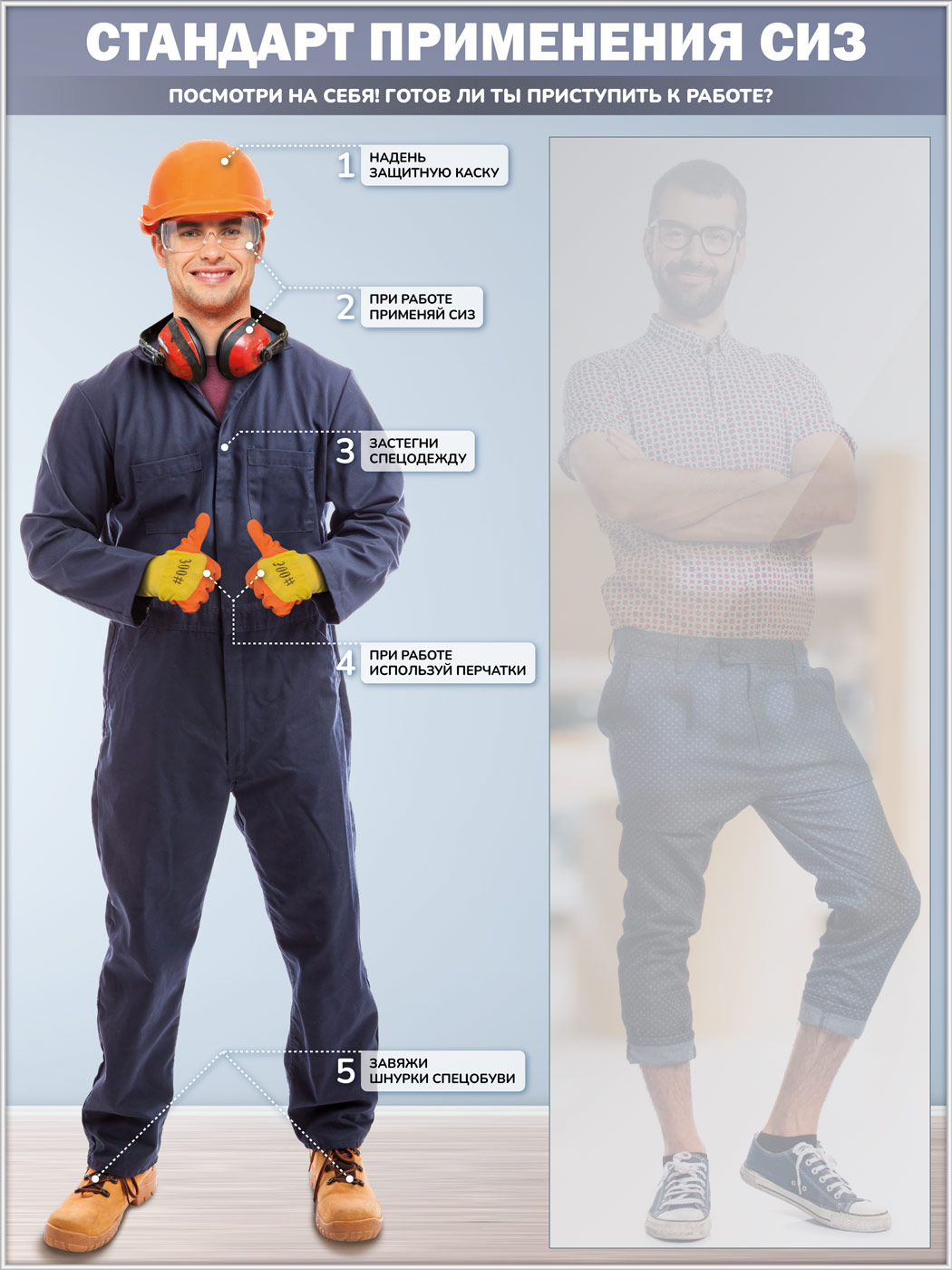 Стенд для демонстрации применения СИЗ с зеркалом, 1500х2000 мм в серебряном багете (СПС-01-С) в Ачинске купить