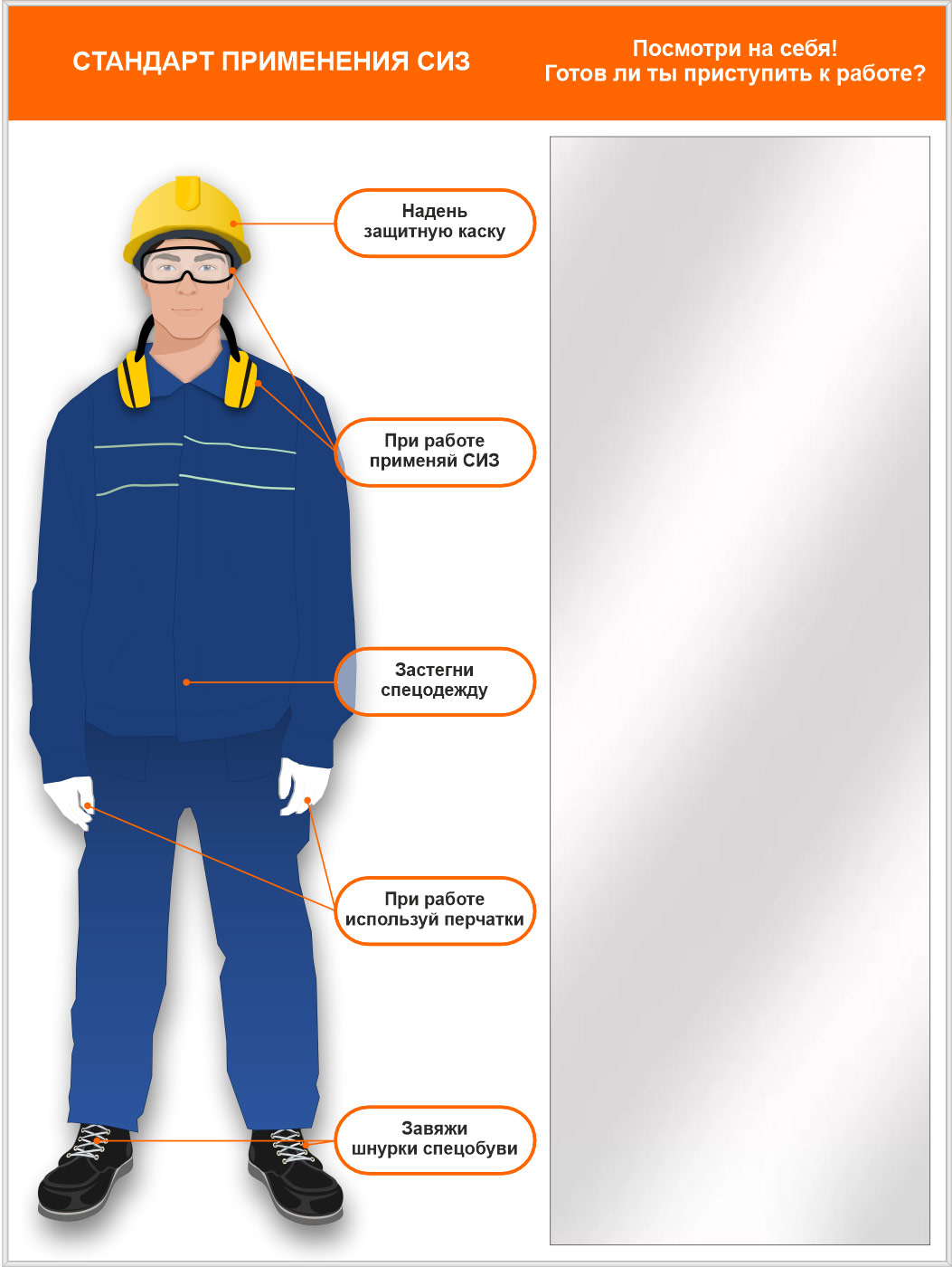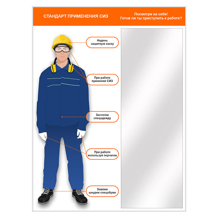 Стенд для демонстрации применения СИЗ с зеркалом, 1500х2000 мм в серебряном багете (СПС-01.2-С) в Ачинске купить