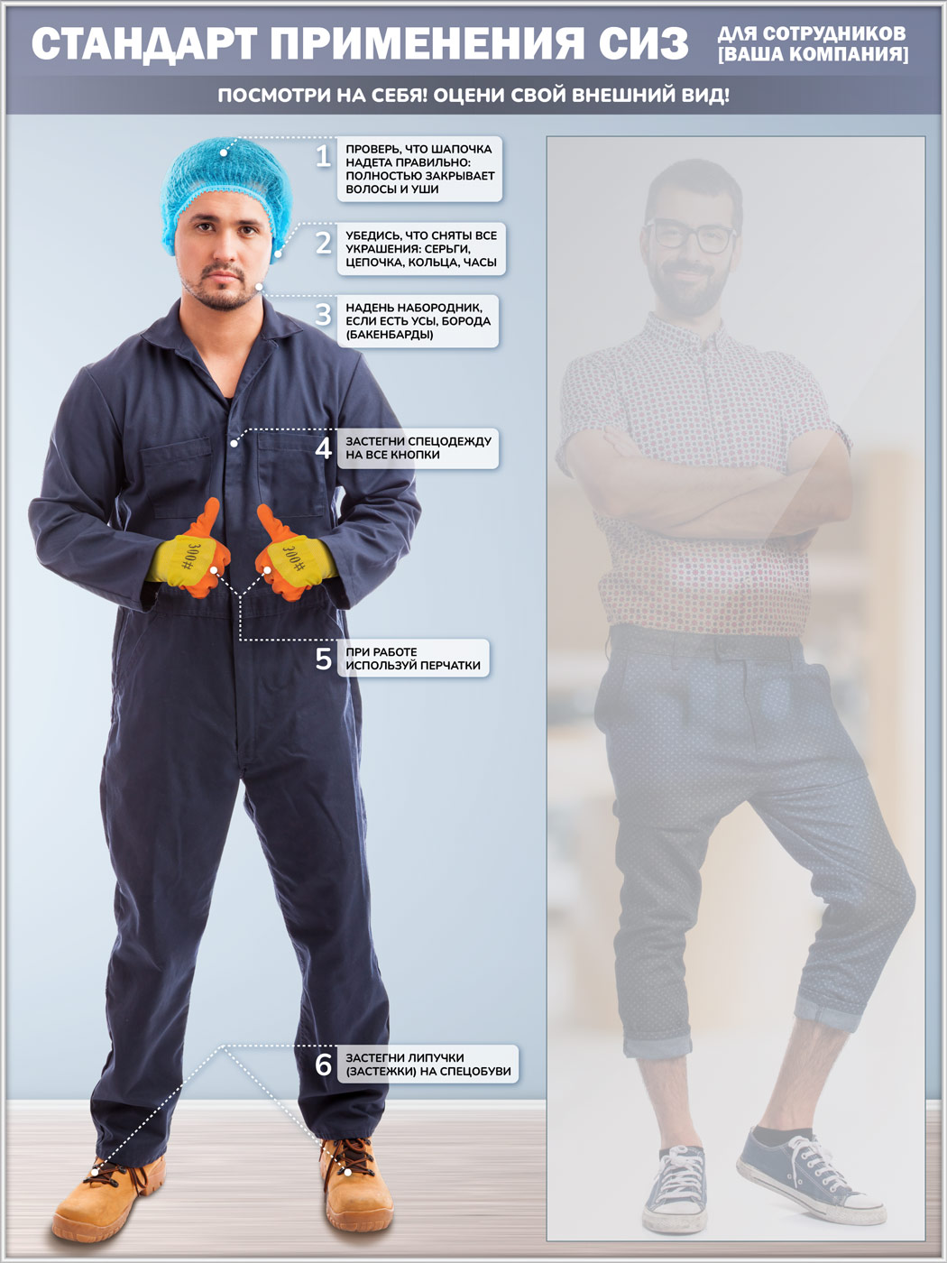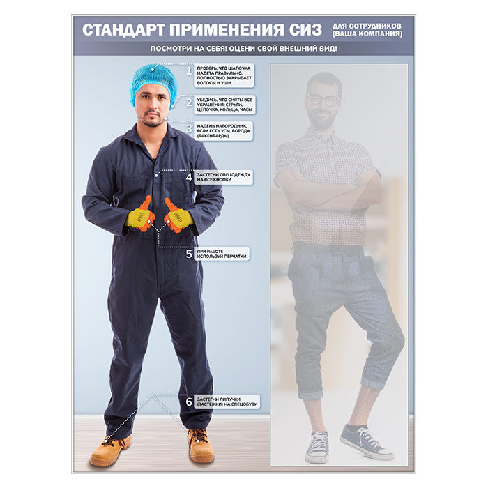 Стенд для демонстрации применения СИЗ с зеркалом, 1500х2000 мм в серебряном багете (СПС-02-С) в Ачинске купить