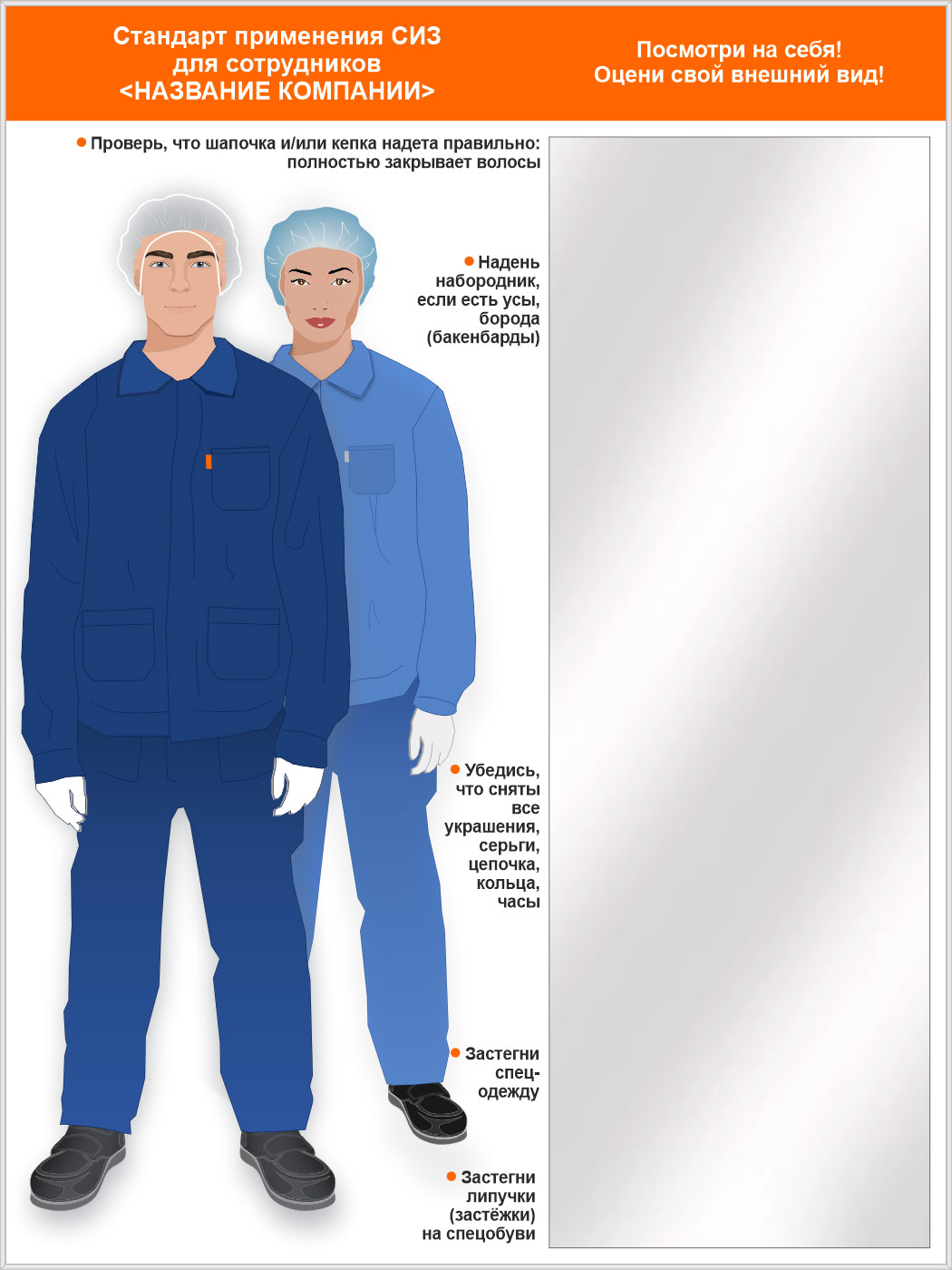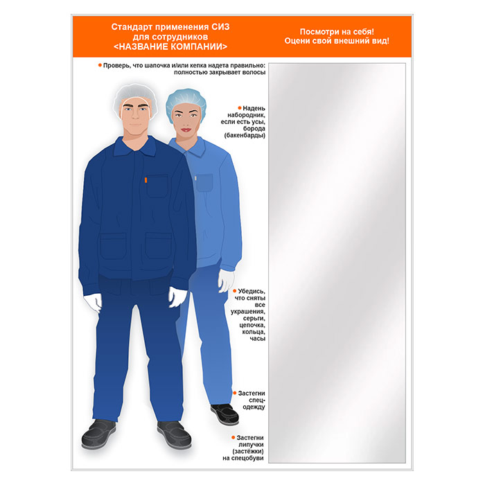 Стенд для демонстрации применения СИЗ с зеркалом, 1500х2000 мм в серебряном багете (СПС-04.2-С) в Ачинске купить