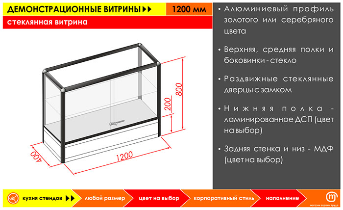 Стеклянная витрина, 1200 мм в Ачинске купить