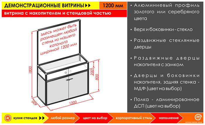 Витрина с накопителем и стендовой частью, 1200 мм в Ачинске купить