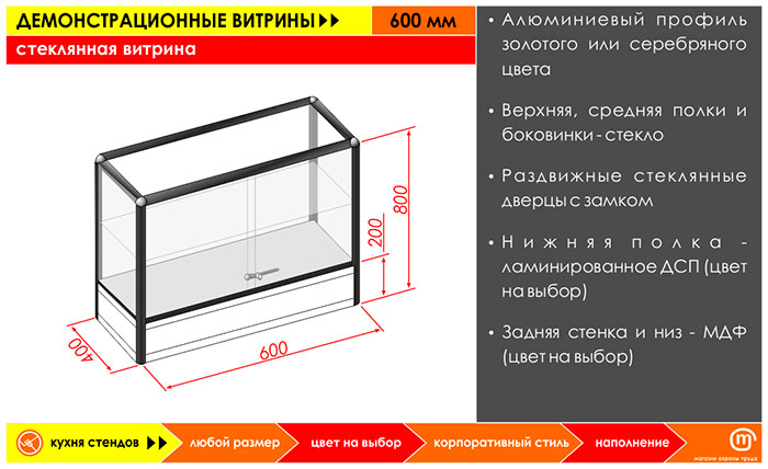 Стеклянная витрина, 600 мм в Ачинске купить