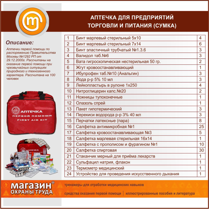 Аптечка для предприятий торговли и питания - (на 100 человек) - сумка в Ачинске купить