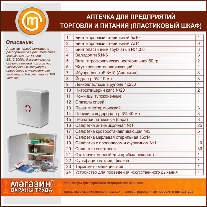 Аптечка для предприятий торговли и питания - (на 100 человек) - 2 пластиковых шкафа в Ачинске купить