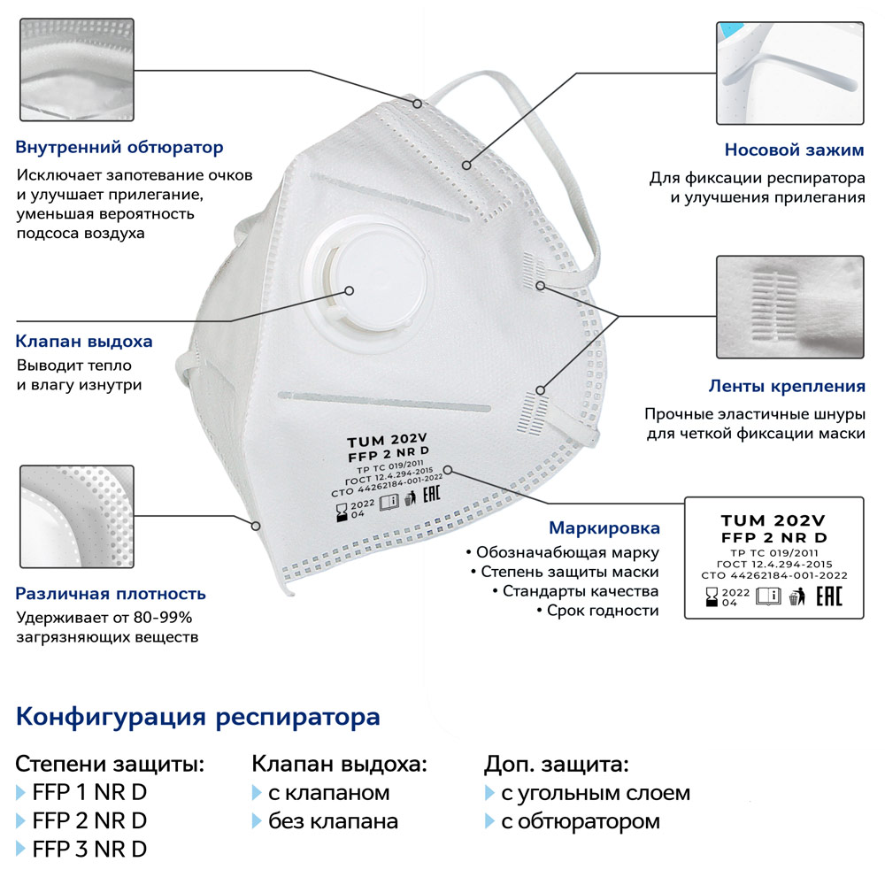 Респиратор противоаэрозольный TUM 302V (FFP3) с клапаном, к-т 10 шт в Ачинске купить