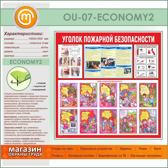 Стенд «Уголок пожарной безопасности» (OU-07-ECONOMY2) в Ачинске купить