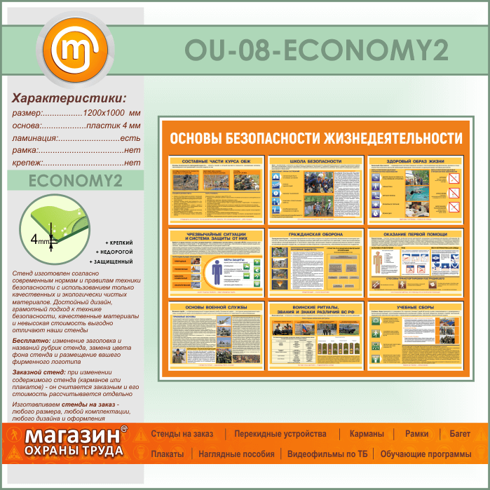 Стенд «Основы безопасности жизнедеятельности» (OU-08-ECONOMY2) в Ачинске купить