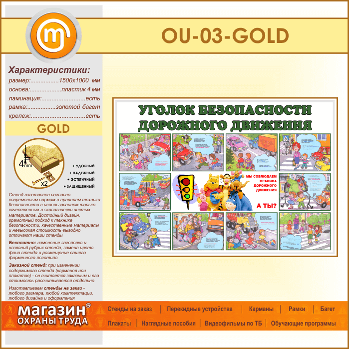 Стенд «Уголок безопасности дорожного движения» (OU-03-GOLD) в Ачинске купить