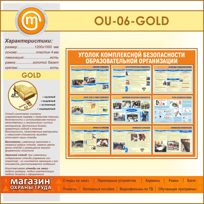 Стенд «Уголок комплексной безопасности образовательной организации» (OU-06-GOLD) в Ачинске купить