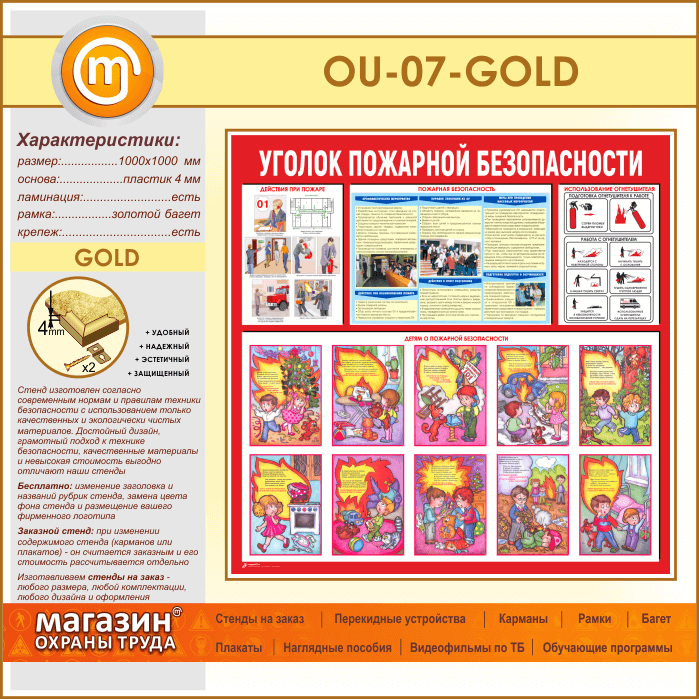 Стенд «Уголок пожарной безопасности» (OU-07-GOLD) в Ачинске купить
