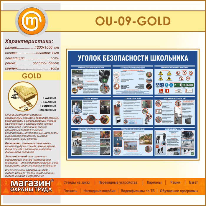 Стенд «Уголок безопасности школьника» (OU-09-GOLD) в Ачинске купить