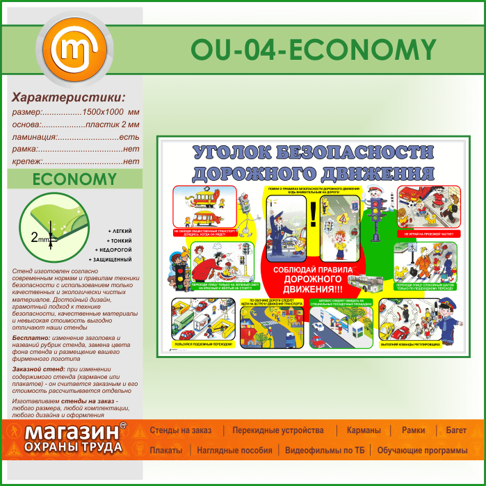 Стенд «Уголок безопасности дорожного движения» (OU-04-ECONOMY) в Ачинске купить