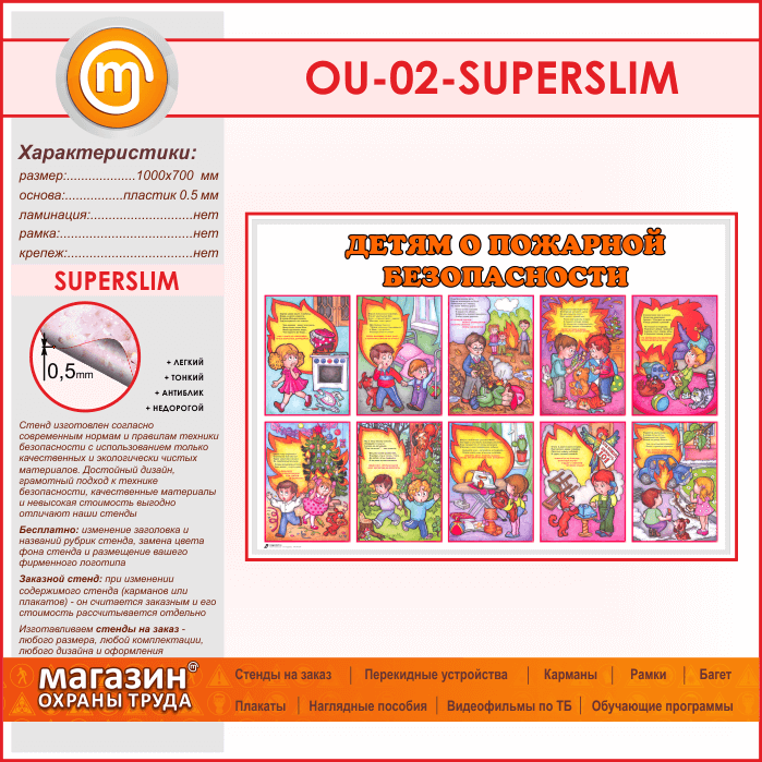 Стенд «Детям о пожарной безопасности» (OU-02-SUPERSLIM) в Ачинске купить