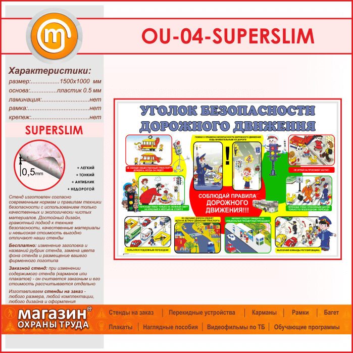 Стенд «Уголок безопасности дорожного движения» (OU-04-SUPERSLIM) в Ачинске купить