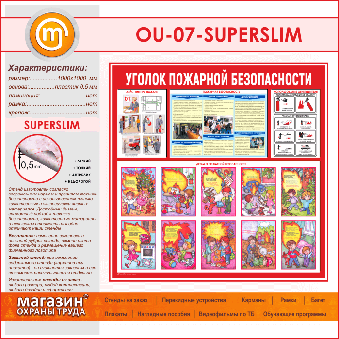 Стенд «Уголок пожарной безопасности» (OU-07-SUPERSLIM) в Ачинске купить