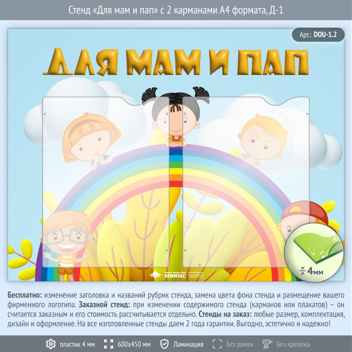 Стенд «Для мам и пап» с 2 карманами А4 формата (DOU-1.2) в Ачинске купить