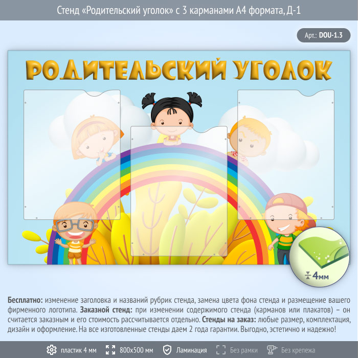 Стенд «Родительский уголок» с 3 карманами А4 формата (DOU-1.3) в Ачинске купить