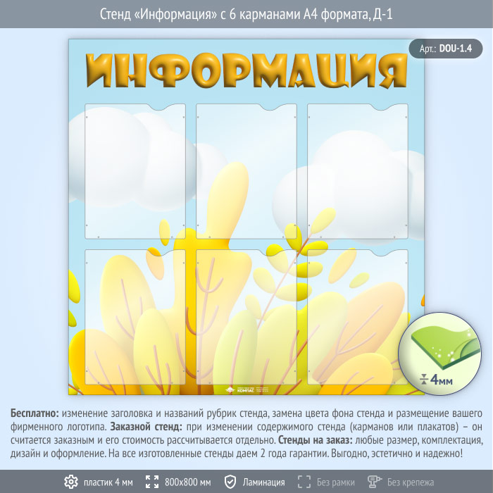 Стенд «Информация» с 6 карманами А4 формата (DOU-1.4) в Ачинске купить
