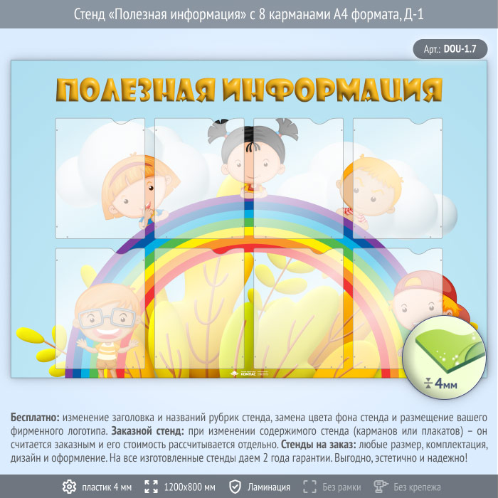 Стенд «Полезная информация» с 8 карманами А4 формата (DOU-1.7) в Ачинске купить