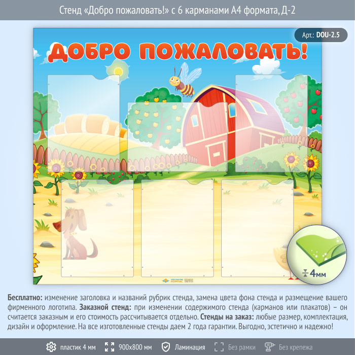 Стенд «Добро пожаловать!» с 6 карманами А4 формата (DOU-2.5) в Ачинске купить