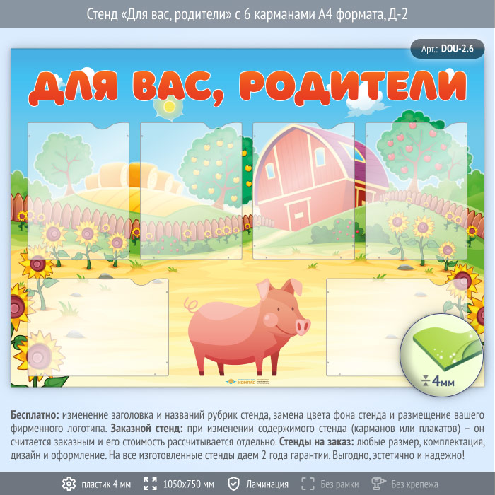 Стенд «Для вас, родители» с 6 карманами А4 формата (DOU-2.6) в Ачинске купить