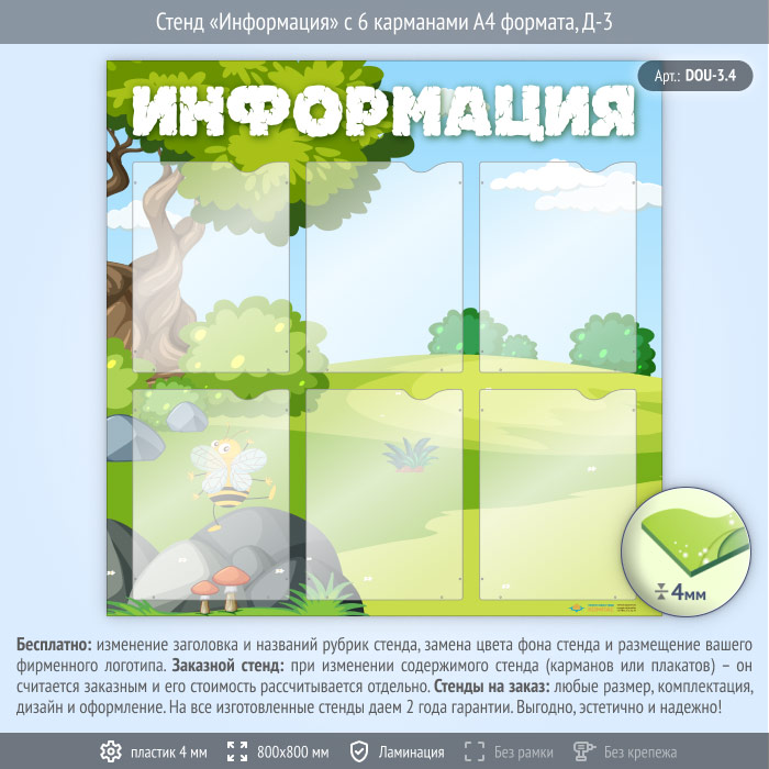Стенд «Информация» с 6 карманами А4 формата (DOU-3.4) в Ачинске купить