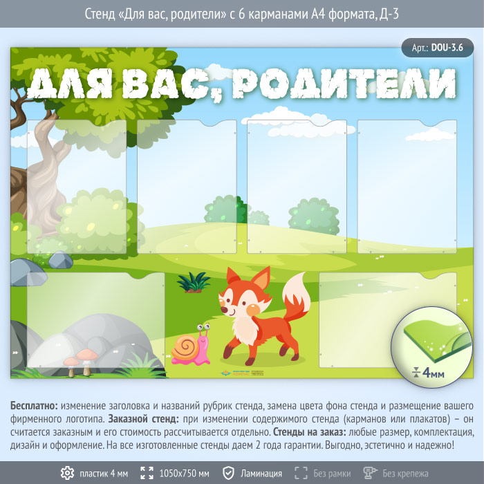 Стенд «Для вас, родители» с 6 карманами А4 формата (DOU-3.6) в Ачинске купить
